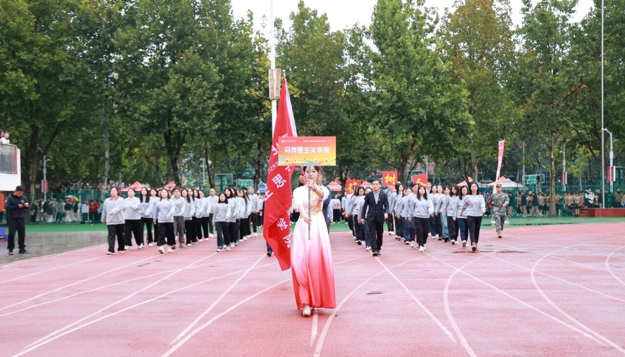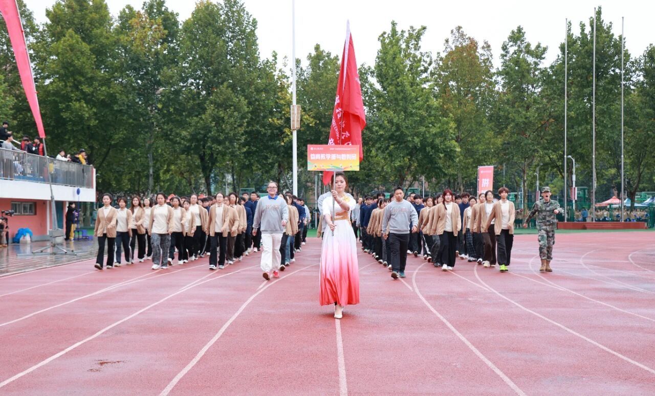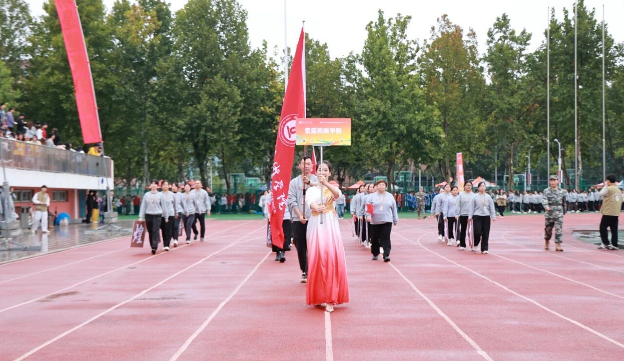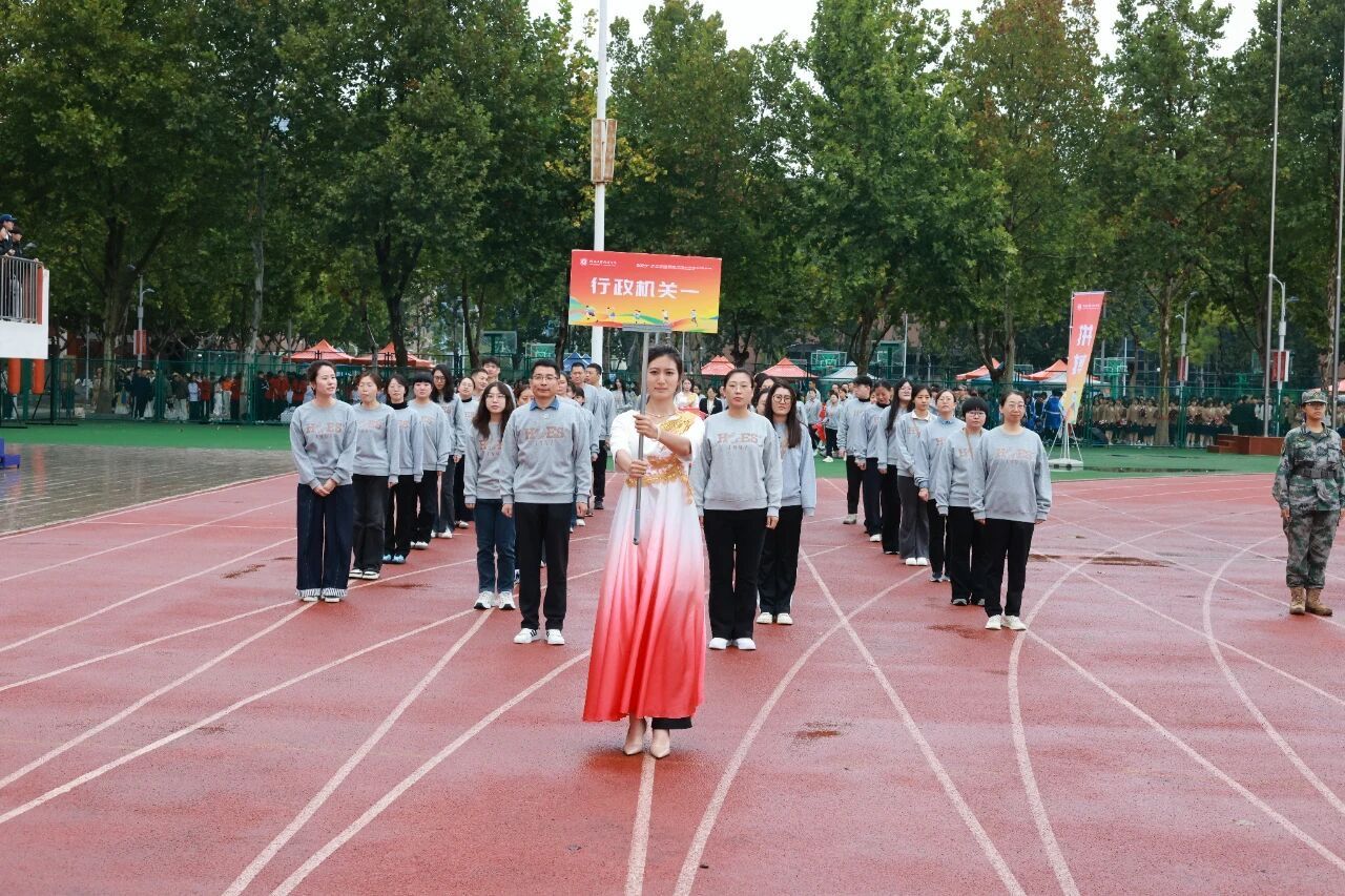 开幕式在激昂的《运动员进行曲》中正式开始。国旗护卫队率先入场,他们步伐铿锵,身姿挺拔,目光如炬,展现了我校国旗队庄严威武的气势。紧随其后的是校旗方阵与各学院运动员代表方阵,他们精神抖擞、意气风发,以掷地有声的口号和各具专业特色的表演,展现了河工人昂扬进取的精神风貌。由学校教职工代表组成的教职工方队步伐沉稳、神采奕奕,展现了新时代教育工作者笃行不怠的使命担当与育人风采。