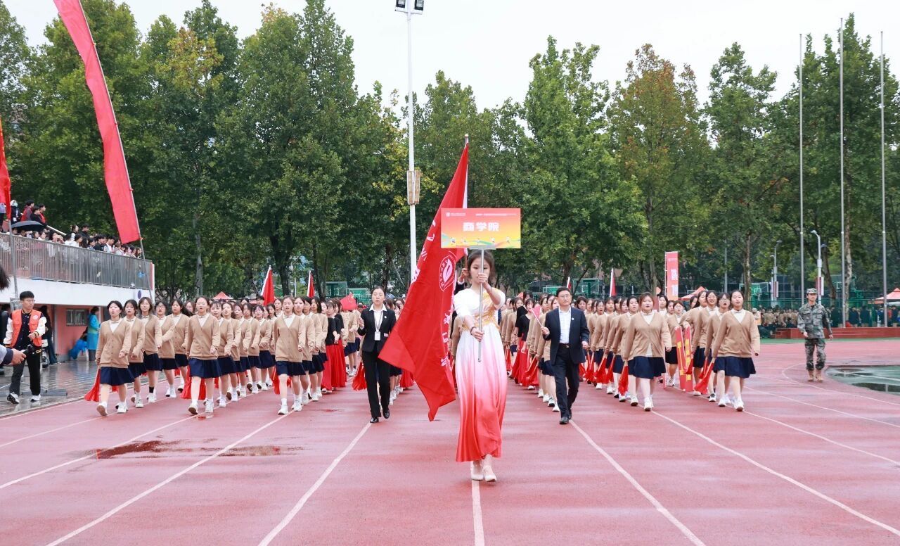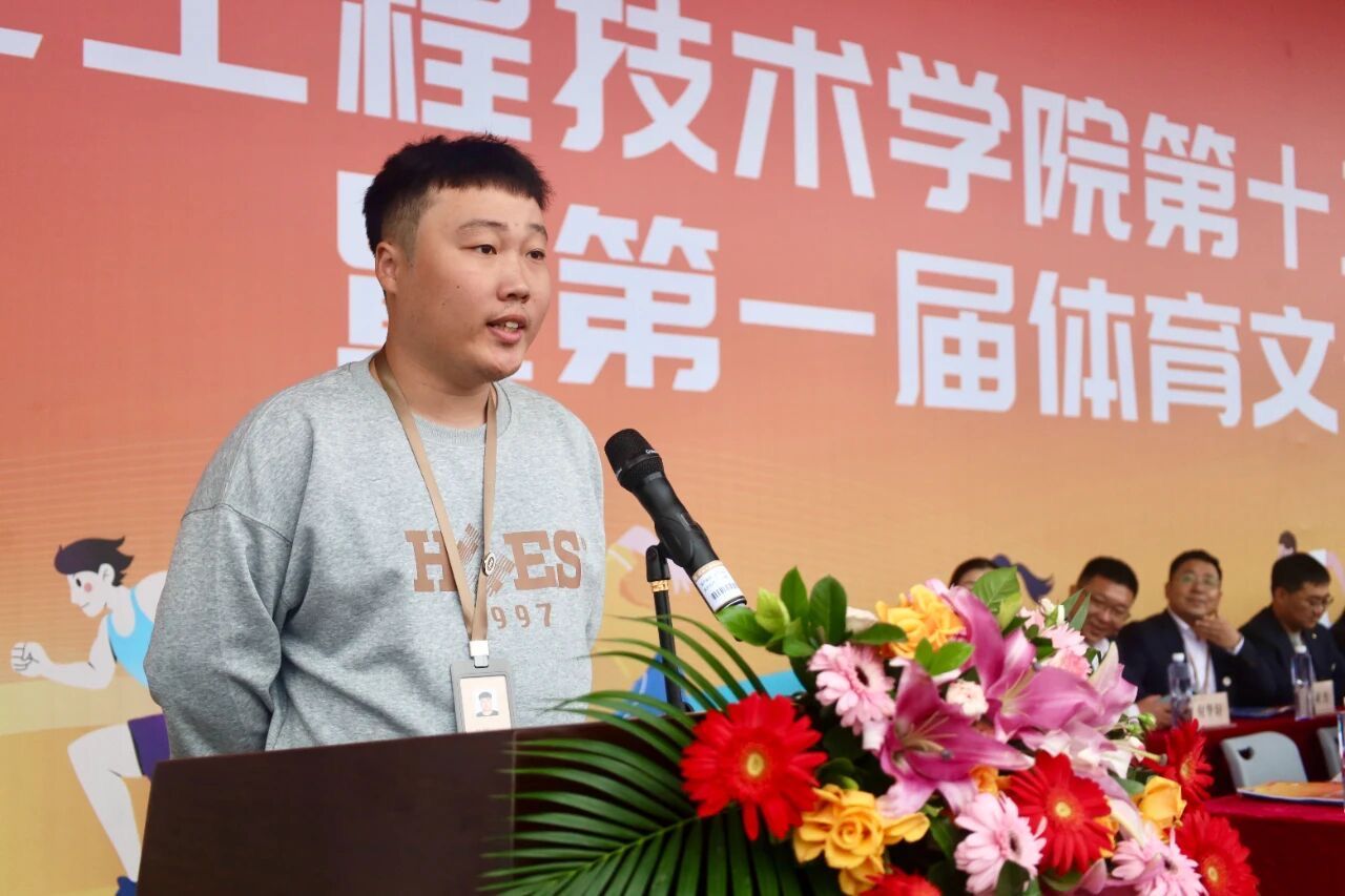 校长致开幕词。他指出,我校健儿在省级以上赛事中屡创佳绩,这不仅是拼搏的硕果、体育精神的彰显,更是新时代青年以体强心、以赛促行的有力证明。他鼓励广大师生积极参与丰富多彩的体育活动,共同营造充满活力的校园体育文化。他希望大家在未来人生的广阔赛道中也要保持奔跑姿态,将赛场上的团结、拼搏、奋进精神融入日常学习与生活,努力跑出属于当代青年的最好成绩。