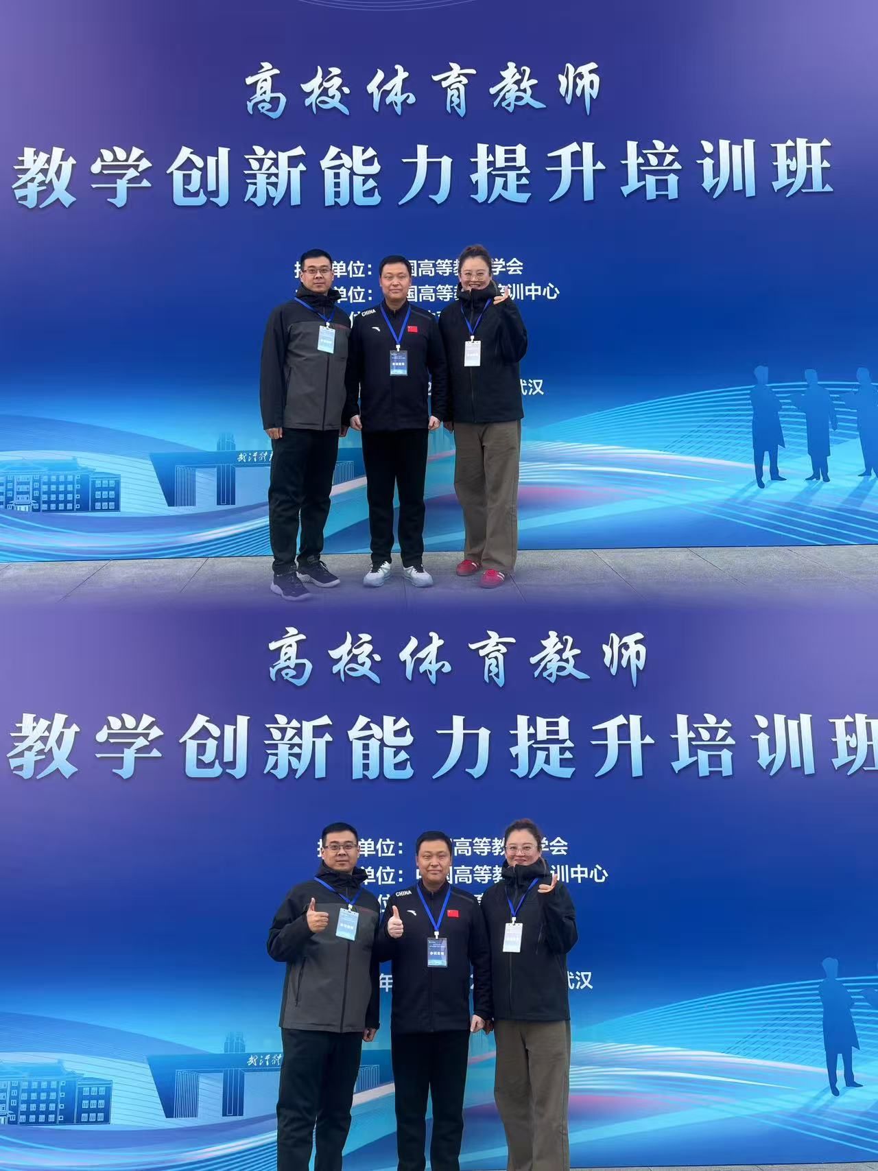 11月21日至23日,高校体育教师教学创新能力提升培训班在武汉体育学院顺利举办。我校体育教学部姜雯耀、许钊、苏华靓三位副部长参加了此次培训。本次培训班汇聚了来自复旦大学、北京体育大学、哈尔滨工业大学、华中师范大学等多所高校的专家学者,围绕五大主题展开深入交流与经验分享,具体包括:新时代体育教师教学创新能力提升路径、体教融合视域下的体育课程建设与人才培养、数智技术赋能体育智慧课堂建设、体育课程与大学生心理健康及自主运动意识,以及体育教学改革与运动项目创新实践。